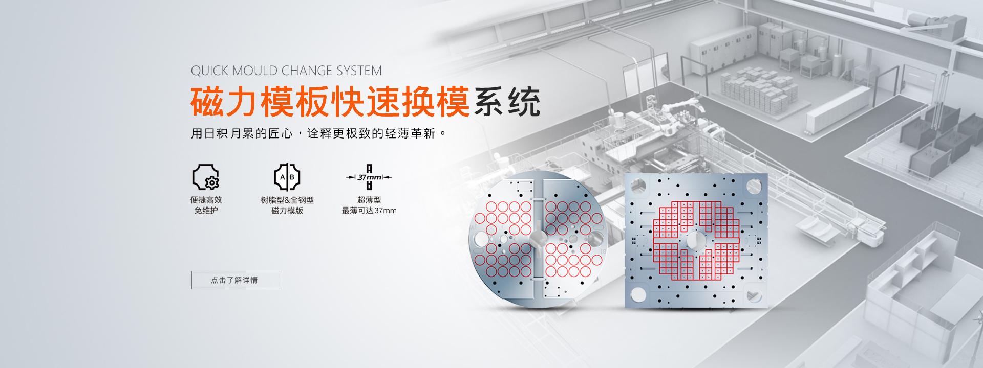 面對市場不斷出現的新挑戰,格萊富助力企業發展,為工業生產提供模具裝夾、模具快換、模具搬運、模具倉儲等完善的換模自動化整體解決方案。使企業不但實現模具快速更換、智能轉運、精益生產,還提高效率,優化工藝,強化競爭優勢...了解更多